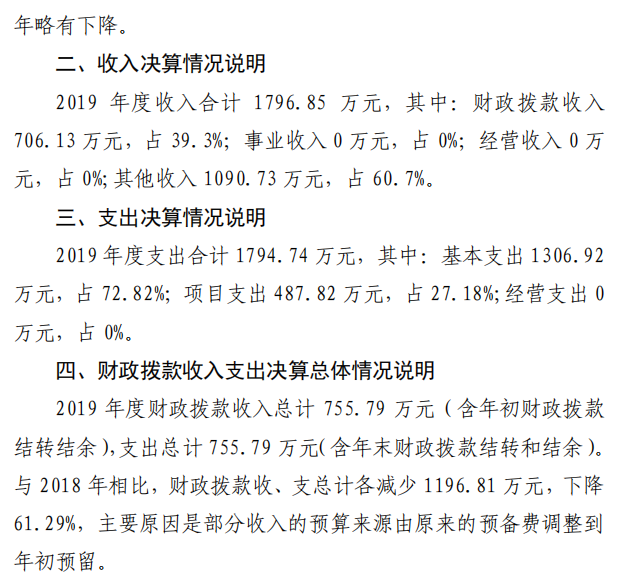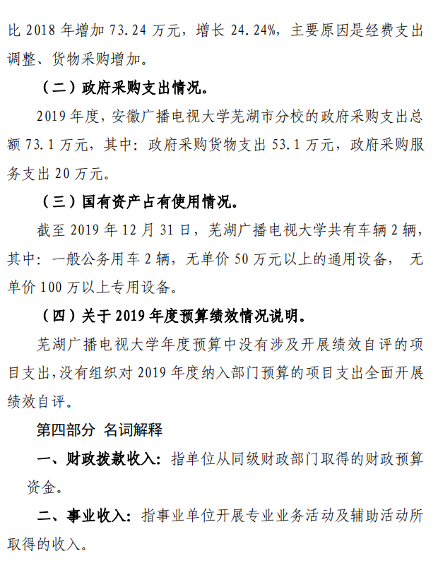安徽广播电视大学芜湖市分校 2019 年度 部门决算