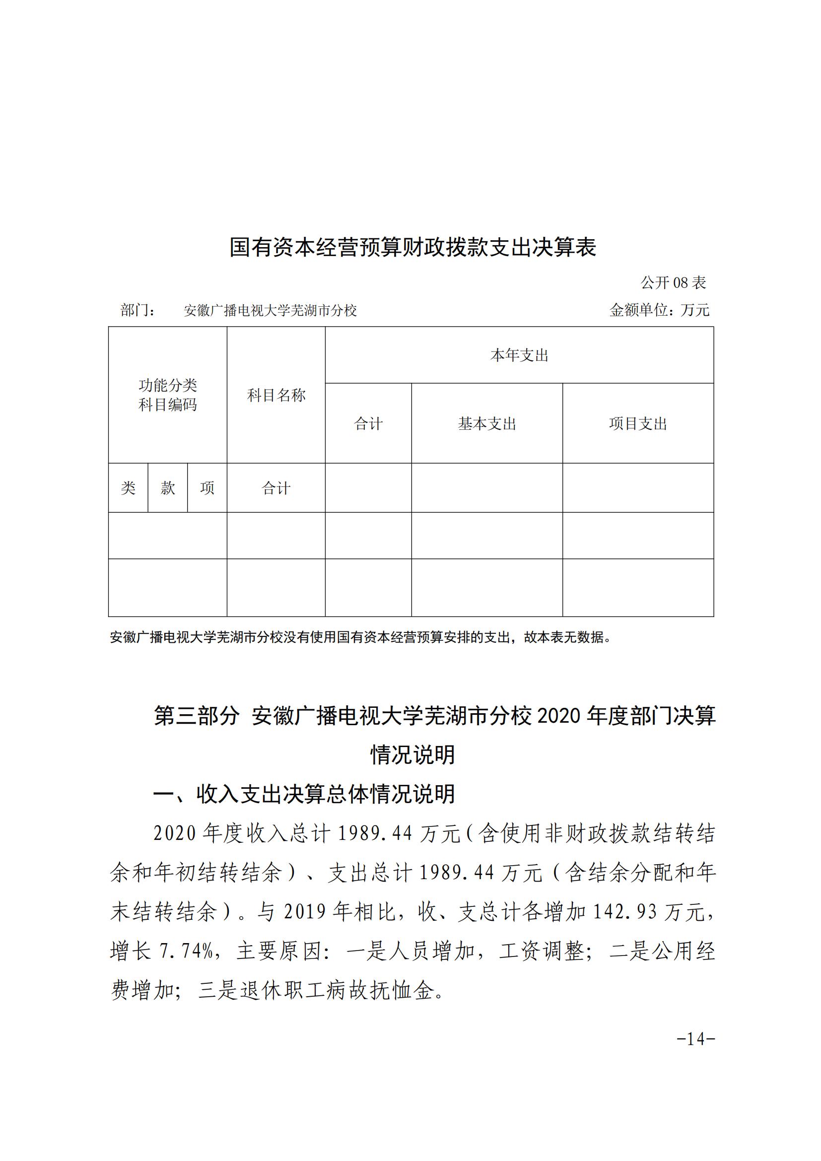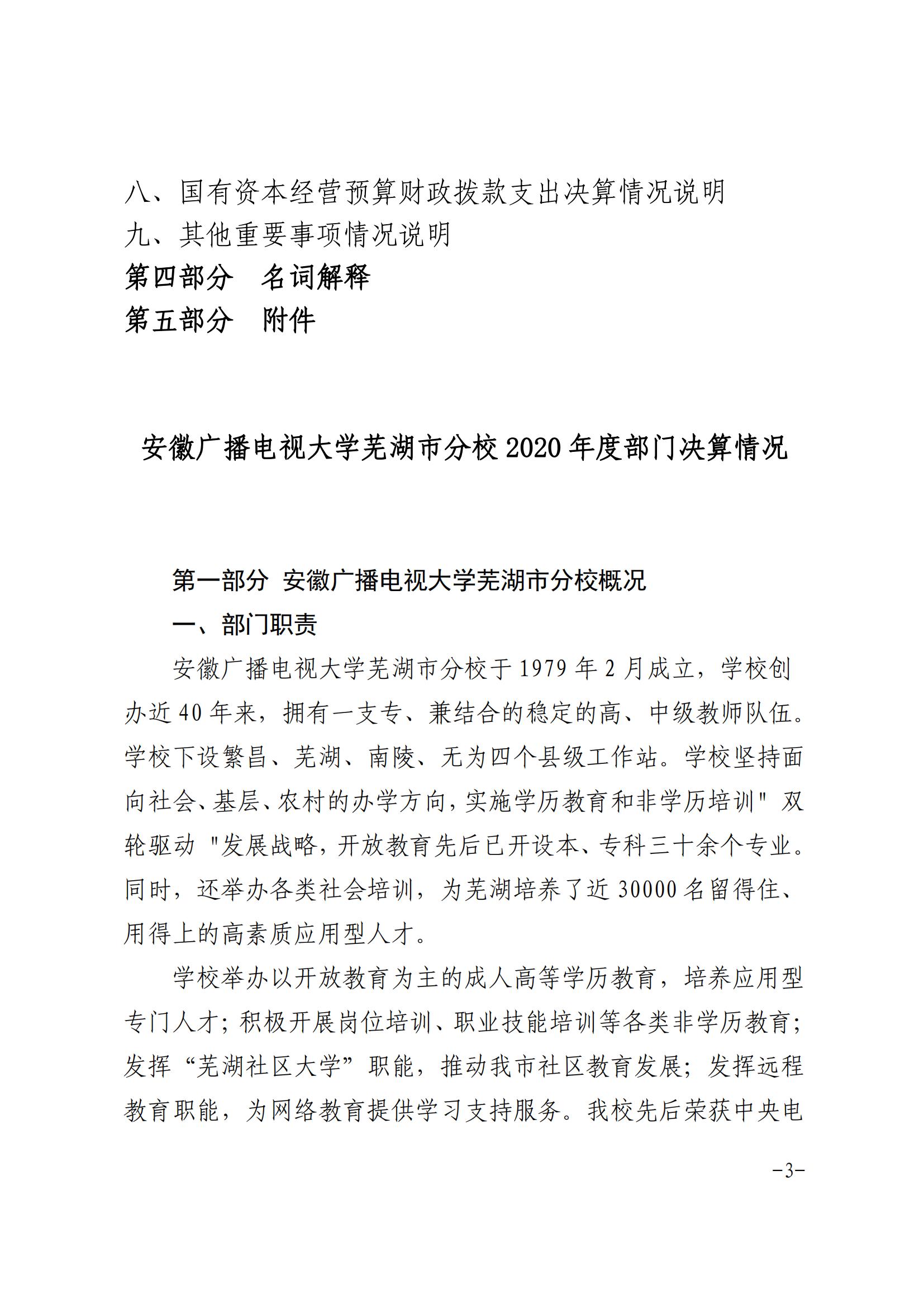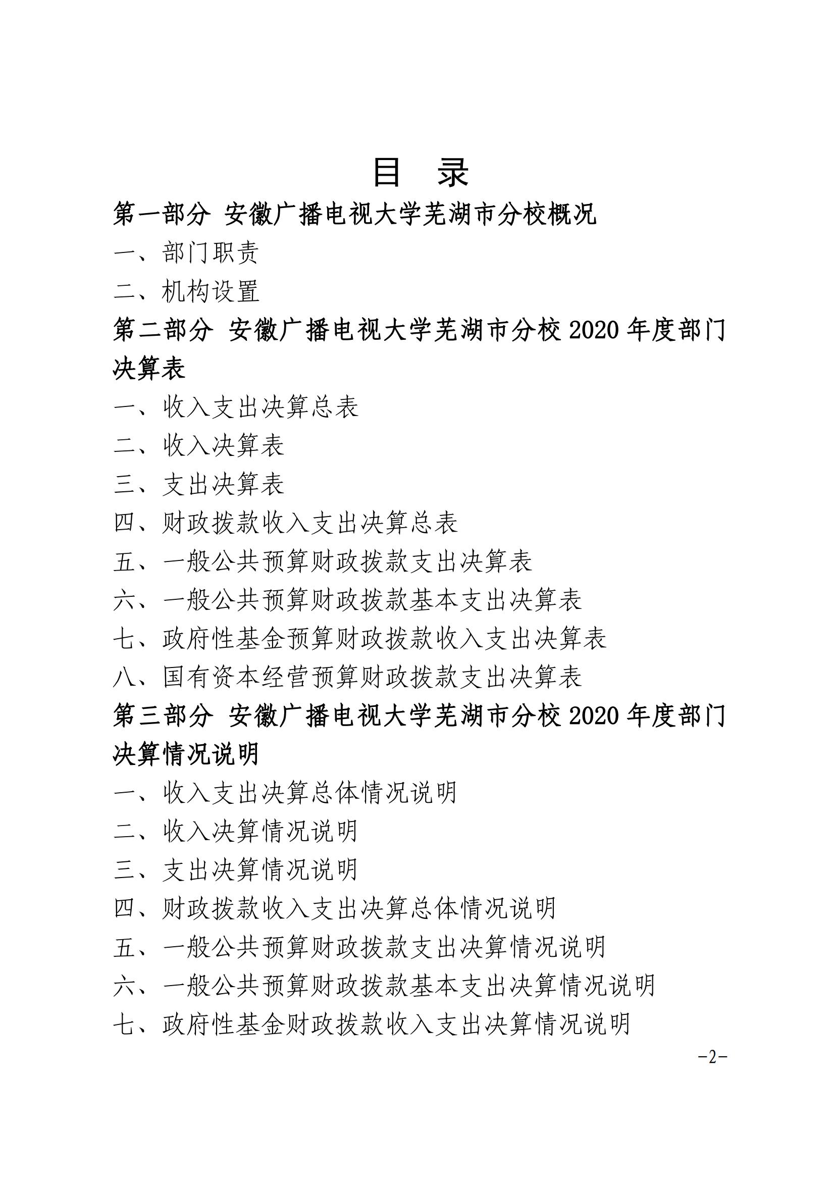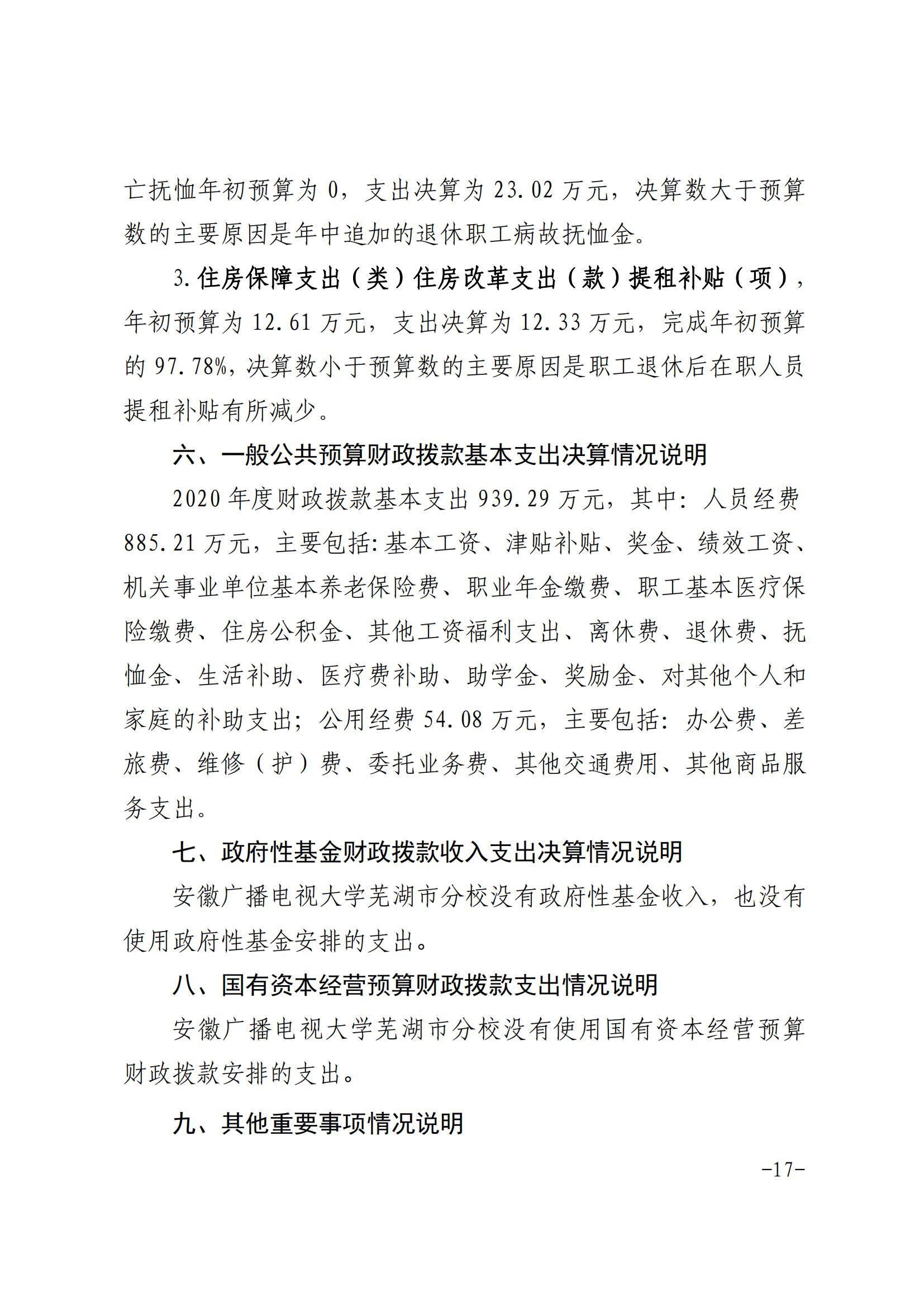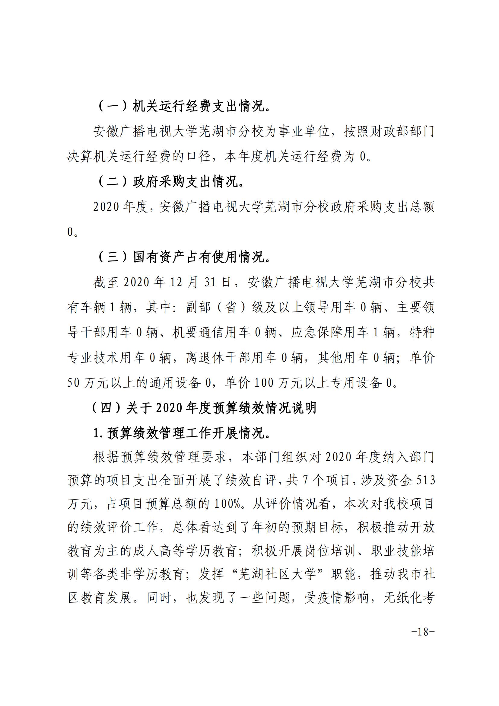 安徽广播电视大学芜湖市分校2020年决算公开