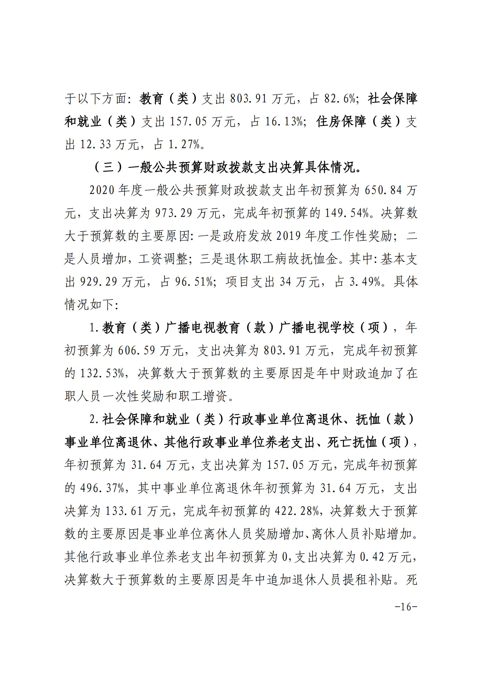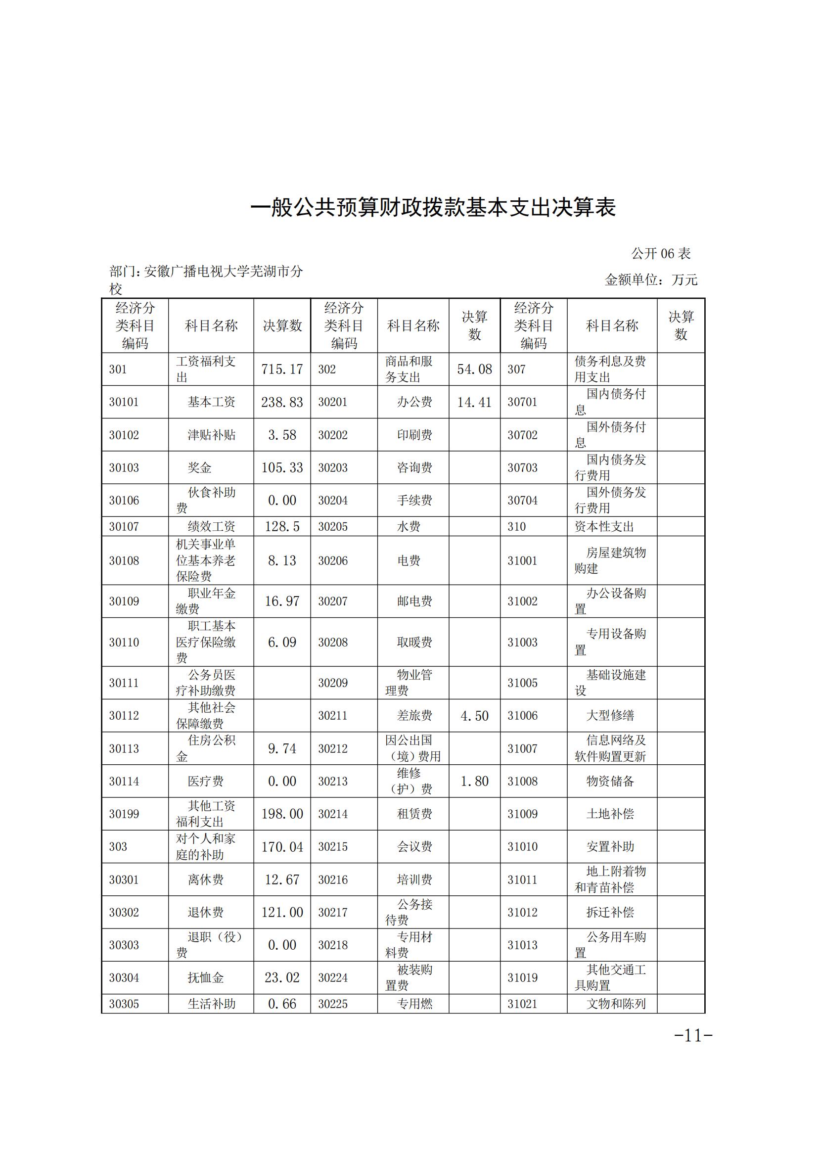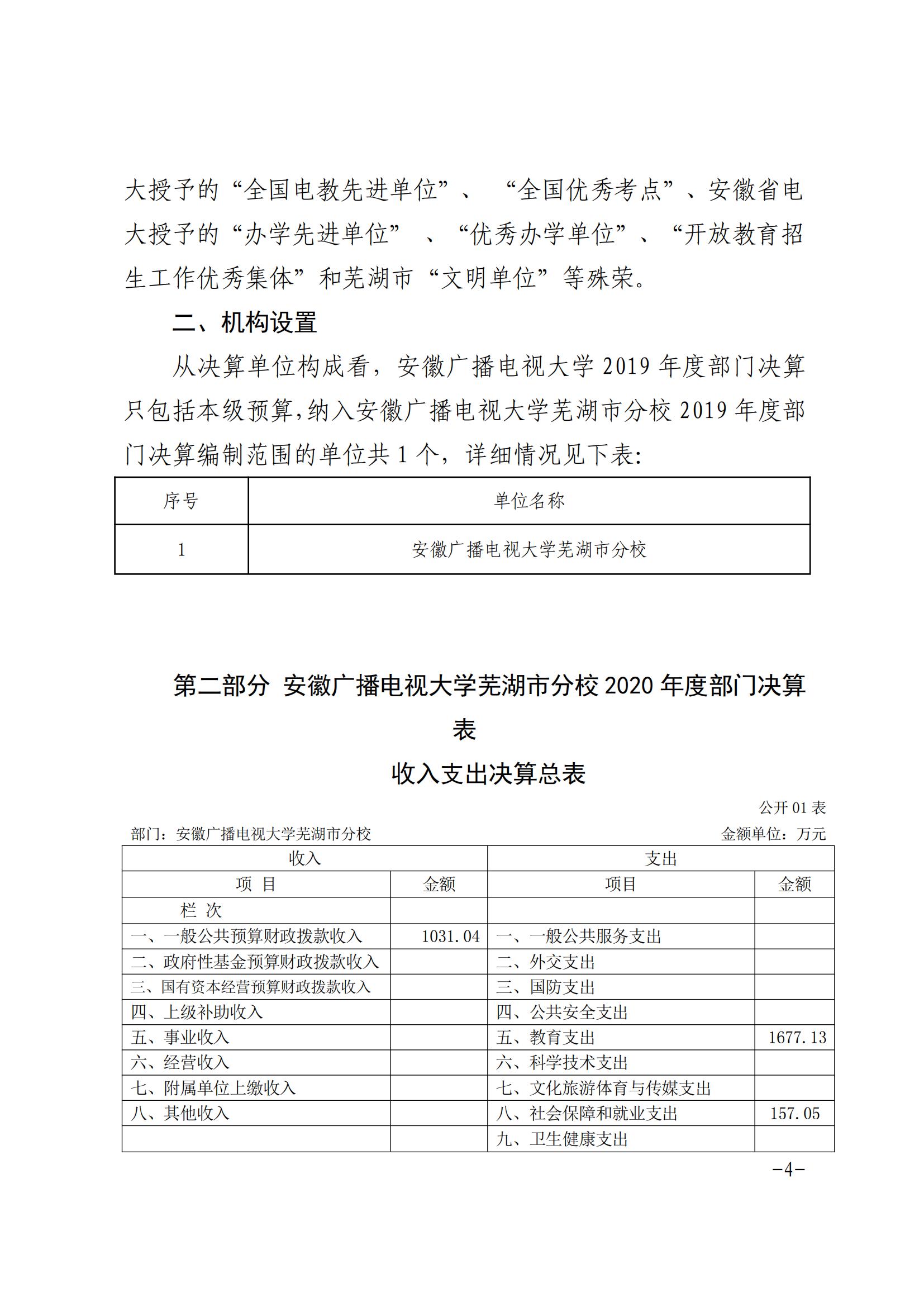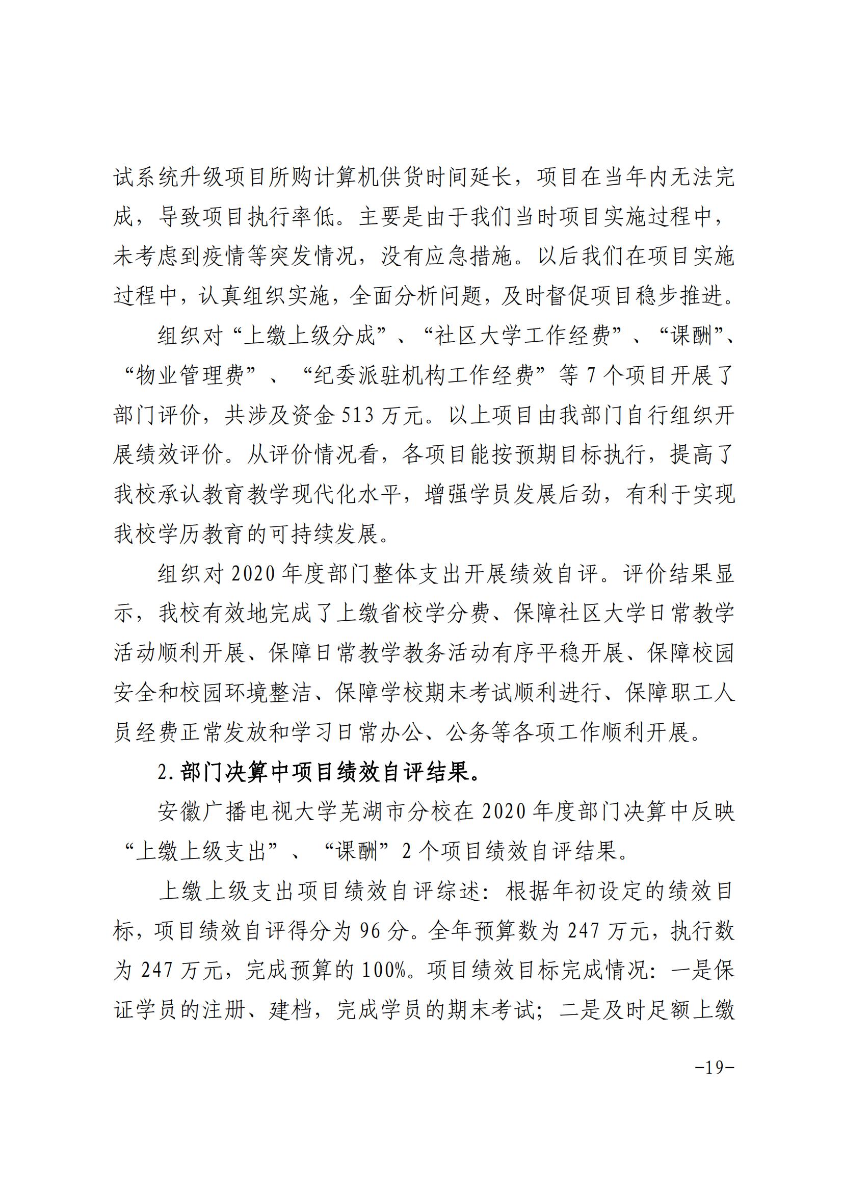 安徽广播电视大学芜湖市分校2020年决算公开