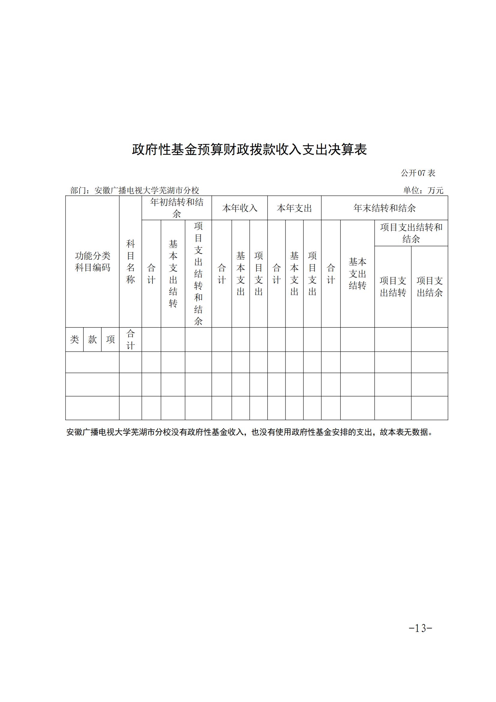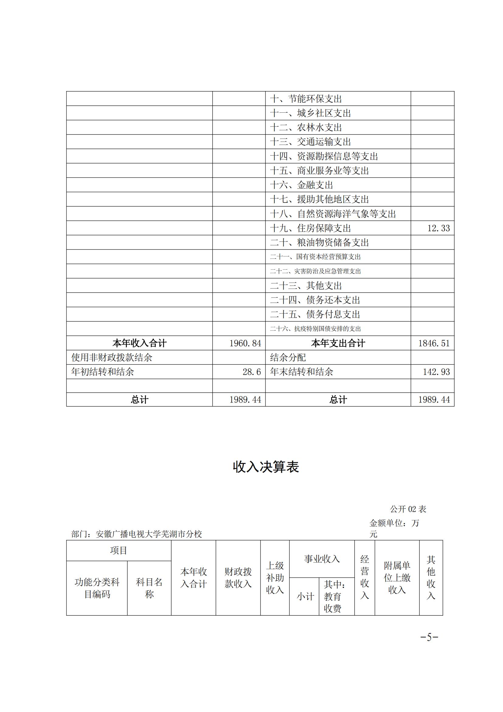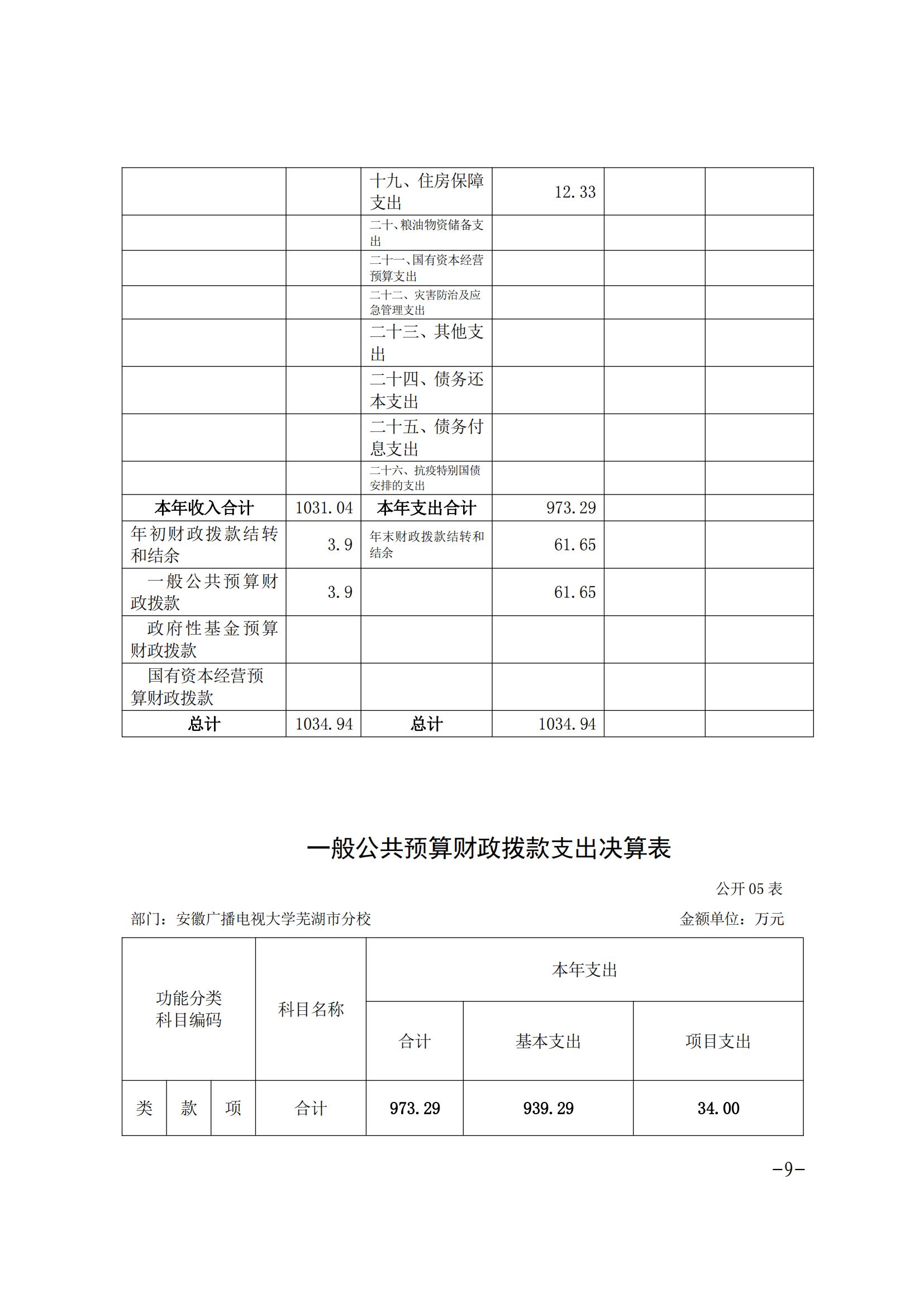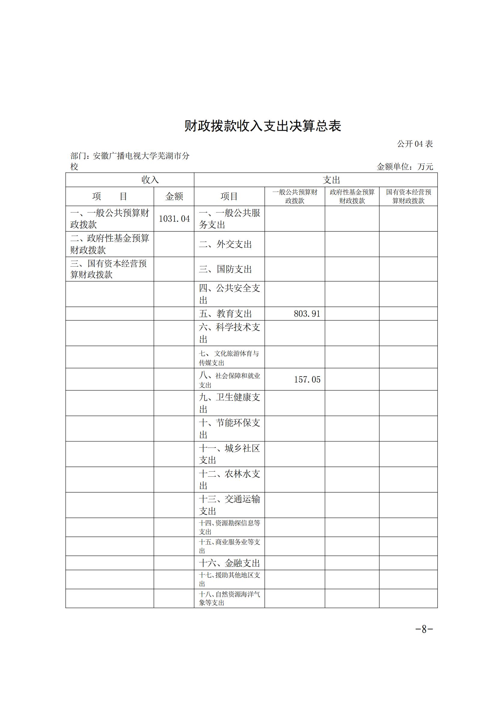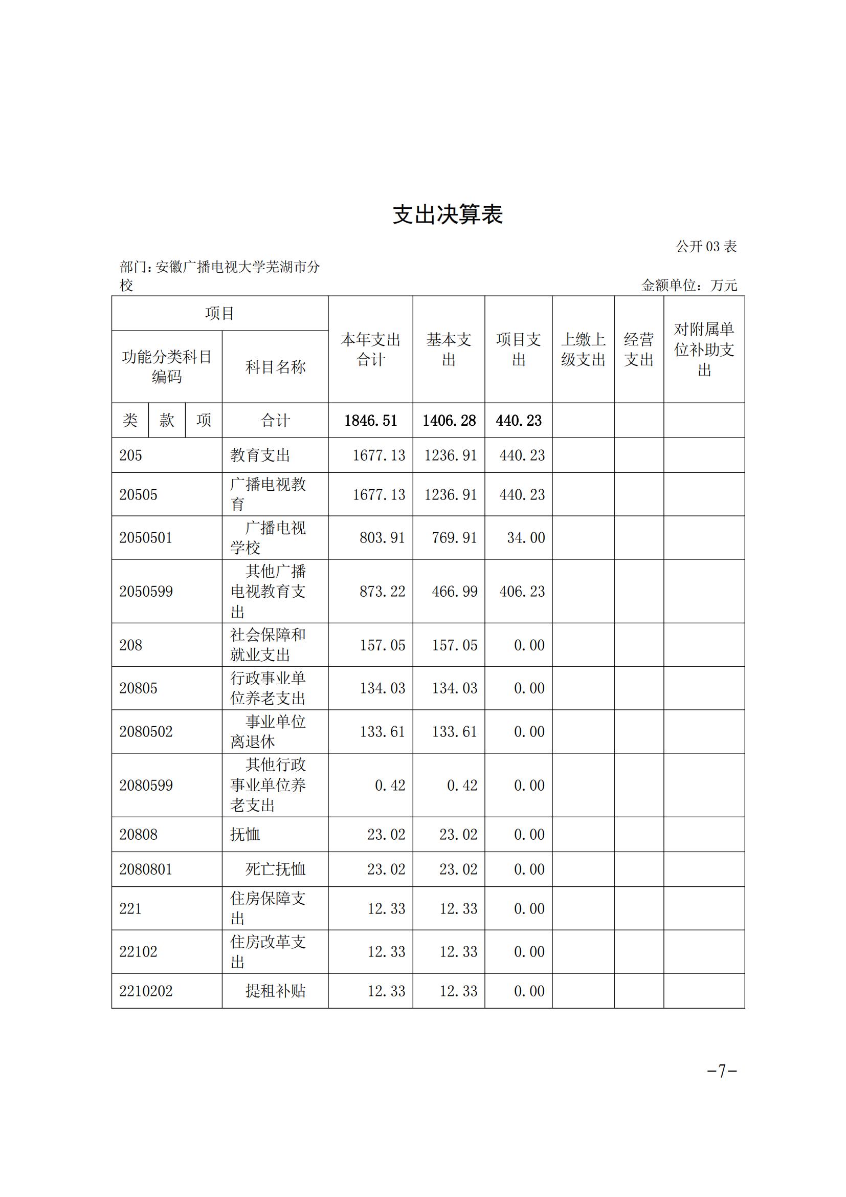 安徽广播电视大学芜湖市分校2020年决算公开